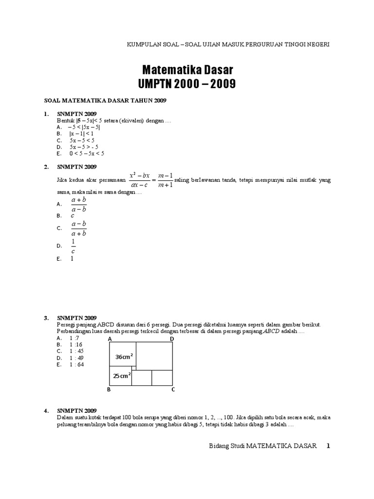 Soal Sbmptn Nilai Mutlak Masnurul from imgv2-2-f.scribdassets.com See full list on mabelakita.blogspot.com Ataupun bisa disebut sebagai sifat pertidaksamaan nilai mutlak. Ada pertidaksamaan aljabar yang ekuivalen dengan pertidaksamaan nilai mutlak. Nov 20, 2019 · hasil pencarian untuk: Oct 28, 2015 · karena pertidaksamaan pada soal adalah kurang dari (< 0), maka nilai uji yang memenuhi adalah yang hasilnya negatif atau kurang dari nol. Oct 07, 2019 · soal tentang pertidaksamaan nilai mutlak sbmptn dan pembahasan author by jagomatematika posted on september 24, 2017 dalam bagian ini akan kami sampaikan kepada kalian semua mengenai soal dan pembahasan materi pertidaksamaan nilai mutlak yang terdapat pada sbmptn Sifat inilah yang bisa dipakai untuk menentukan himpunan penyelesaian pada soal pertidaksamaan nilai mutlak yang diberikan. Sbmptn dan contoh soal pertidaksamaan nilai mutlak sbmptn tkpa kode no juga dapat diartikan sebagai suatu perasaan dalam diri seseorang akibat faktor pembentuknya.