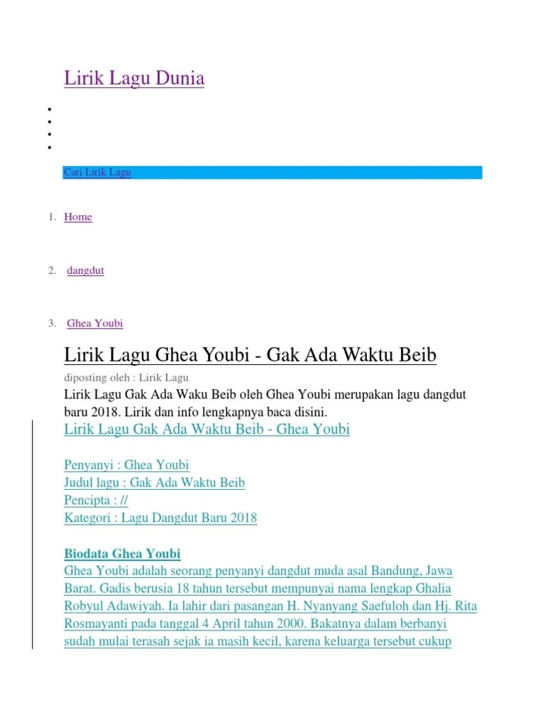 Lyrics for gak ada waktu beib by ghea youbi.